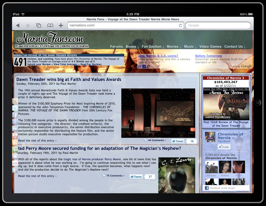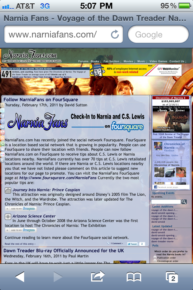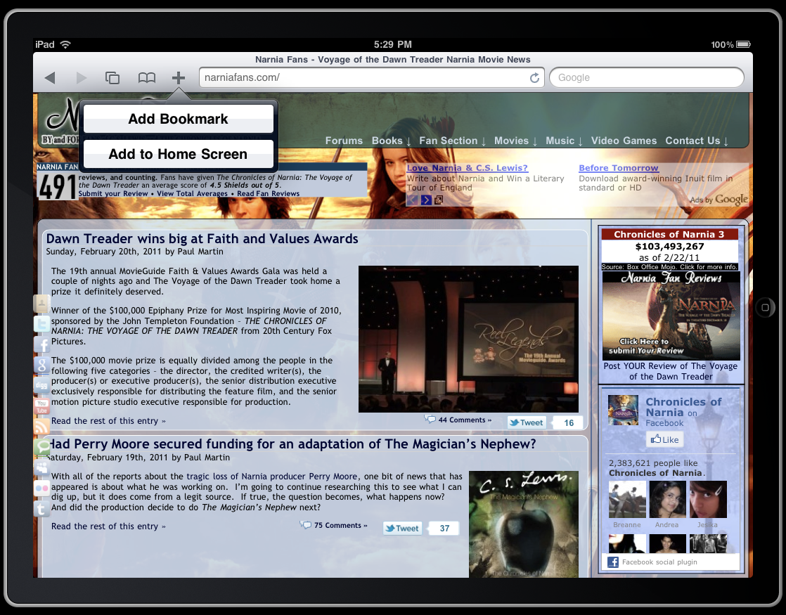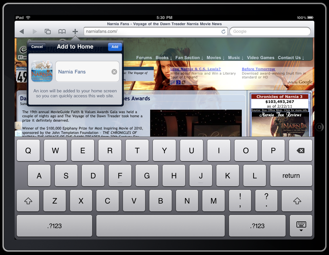 narniaexpert.com/ now has a web app that you can add to your iPhone, iPod Touch, or iPad. You can now add a narniaexpert.com/ bookmark to your device's home screen. This bookmark will look like an application and will have the narniaexpert.com/ icon, but will actually link into Safari where you can view narniaexpert.com/ on your mobile device.