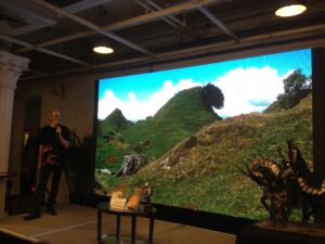 Lewis is very helpful. I mean his texts are pretty clear and his inspirations are quite clear and I think he is in a sense easier, more direct, to illustrate than Tolkien which demands a little more, a little more, a little more, I shouldn’t say originality, but a different form of original approach. I’m just trying to think about there are some amazing images in Narnia the wood between the worlds and a lot of the images from VDT many of the cities are fascinating HHB. It is a portal fantasy where things pass from that world into ours heroes go from our world into theirs and have adventures and come back. There is this in the stories themselves there is a direct connection between the two. The magic I think in Narnia is quite a different form of magic. There are no magic wardrobes in LOTR that kind of magic is not part of that world. This idea of this magic portal that you go through when you are a child is something totally foreign to Tolkien.