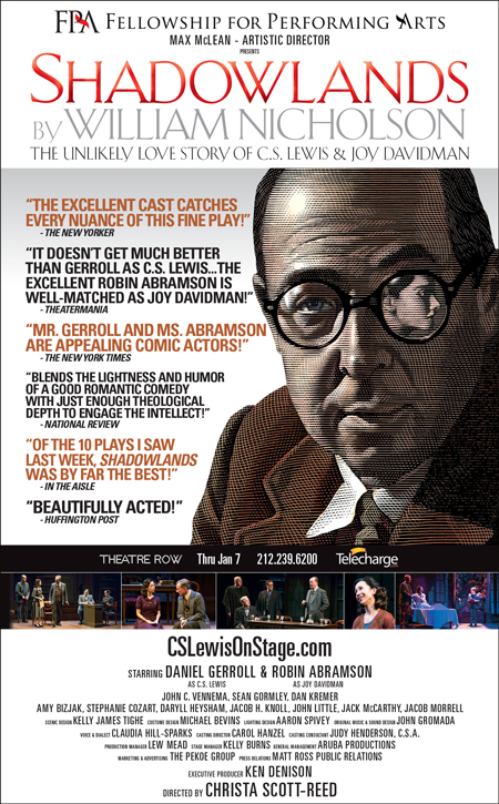 It is not often that something originating as a Christian work can be widely recognized and praised by the media. C.S. Lewis was exceptional at creating Narnia stories based on Christian themes that are beloved by readers of all religious backgrounds. The latest Fellowship for Performing Arts stage production now playing in New York tells C.S. Lewis’s own life story while incorporating the spiritual message from his book “A Grief Observed”. The show’s producer has experience creating great C.S. Lewis based shows that have also been critically received by a diverse audience The Screwtape Letters, The Great Divorce, and The Most Reluctant Convert. Here is one excerpt that highlights Shadowland’s appeal to viewers of all audiences: